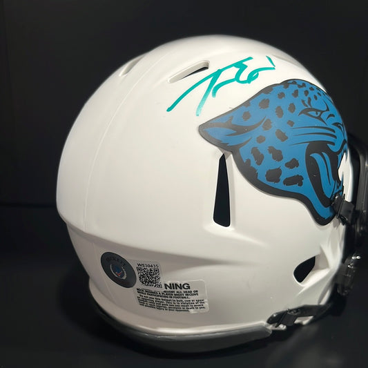 Travis Etienne Autographed Jacksonville Jaguars Lunar Eclipse Mini Helmet BAS