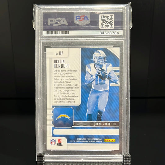 Justin Herbert Autographed 2020 Panini Absolute Football Rookie Trading Card #167 GEM 10 MINT PSA